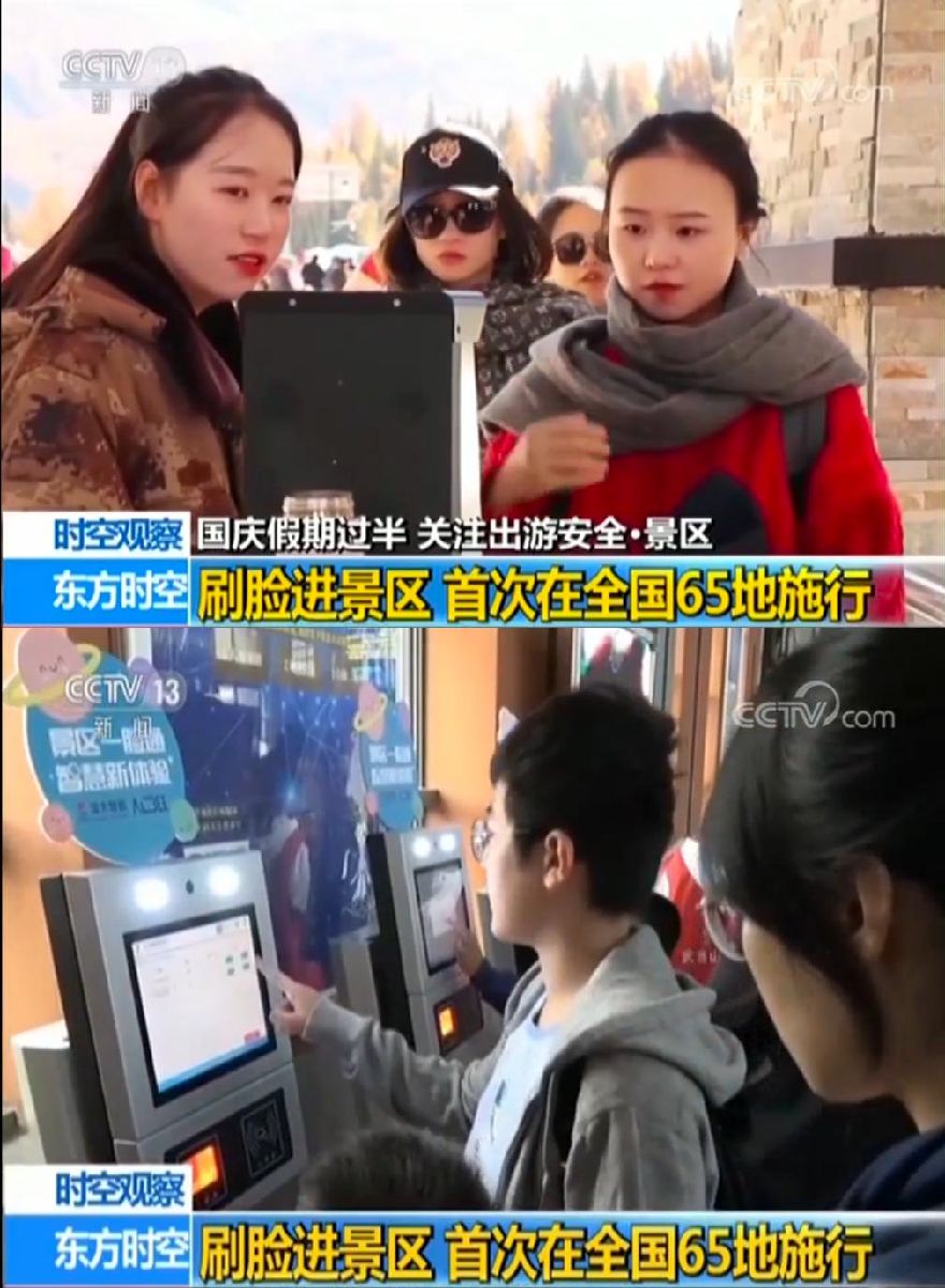 游客刷臉注冊(cè)購(gòu)票后,入園時(shí)無(wú)須出示門票與身份證,人臉識(shí)別閘機(jī)可自動(dòng)對(duì)游客臉部進(jìn)行掃描確認(rèn),只需1秒便可快速進(jìn)入景區(qū)。”十一期間,CCTV13《東方時(shí)空》《24小時(shí)》《朝聞天下》《新聞30分》《共同關(guān)注》《新聞直播間》,CCTV2《經(jīng)濟(jì)信息聯(lián)播》《第一時(shí)間》、CCTV4《中國(guó)新聞》共9檔央視名牌欄目集中報(bào)道——今年十一黃金周,國(guó)內(nèi)65家知名景區(qū)已開(kāi)啟“刷臉入園”模式。值得一提的是,這套在全國(guó)景區(qū)首次大范圍應(yīng)用的刷臉入園系統(tǒng),出自Aibee和深大智能聯(lián)合首創(chuàng)的全域旅游AI升級(jí)方案,方案問(wèn)世僅半年,已迅速展露“規(guī)模效應(yīng)”。