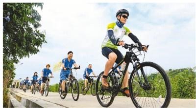游客騎自行車游雙良芭樂園 李海泉攝