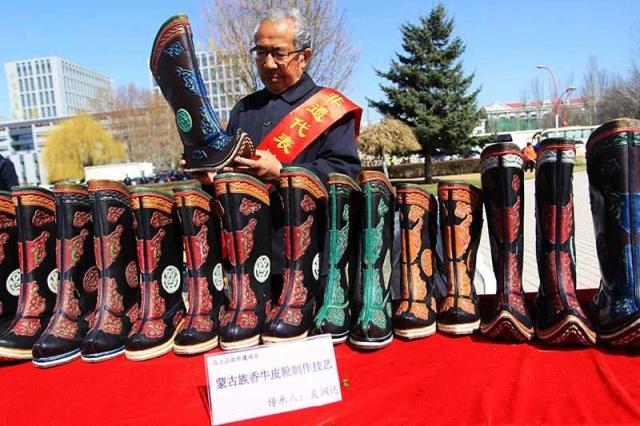 “我的手藝不保密,這門手藝不能失傳了啊?!?6歲的吳潤達老人是蒙古族香牛皮靴手工制作技藝傳承人。吳家制作蒙古靴的歷史久遠,到吳潤達已是第5代。