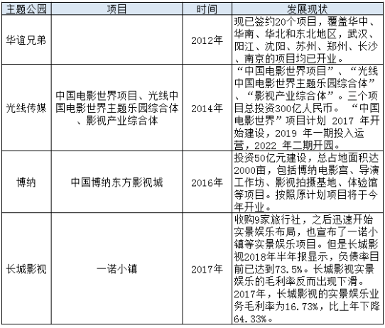 近年來,華誼兄弟、光線傳媒、博納、長城影視等紛紛涉足實景娛樂領域,據悉,奧飛娛樂、歡瑞世紀等國內傳媒公司也有實景娛樂計劃出爐。以主題樂園為發(fā)展載體的實景娛樂已經逐漸成為國內影視娛樂巨頭們競相爭奪的肥肉。