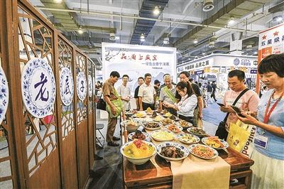 2019寧波國(guó)際旅游展上,寧波主題館的飲食文化專區(qū)吸引不少市民駐足拍照。(李冰 攝)