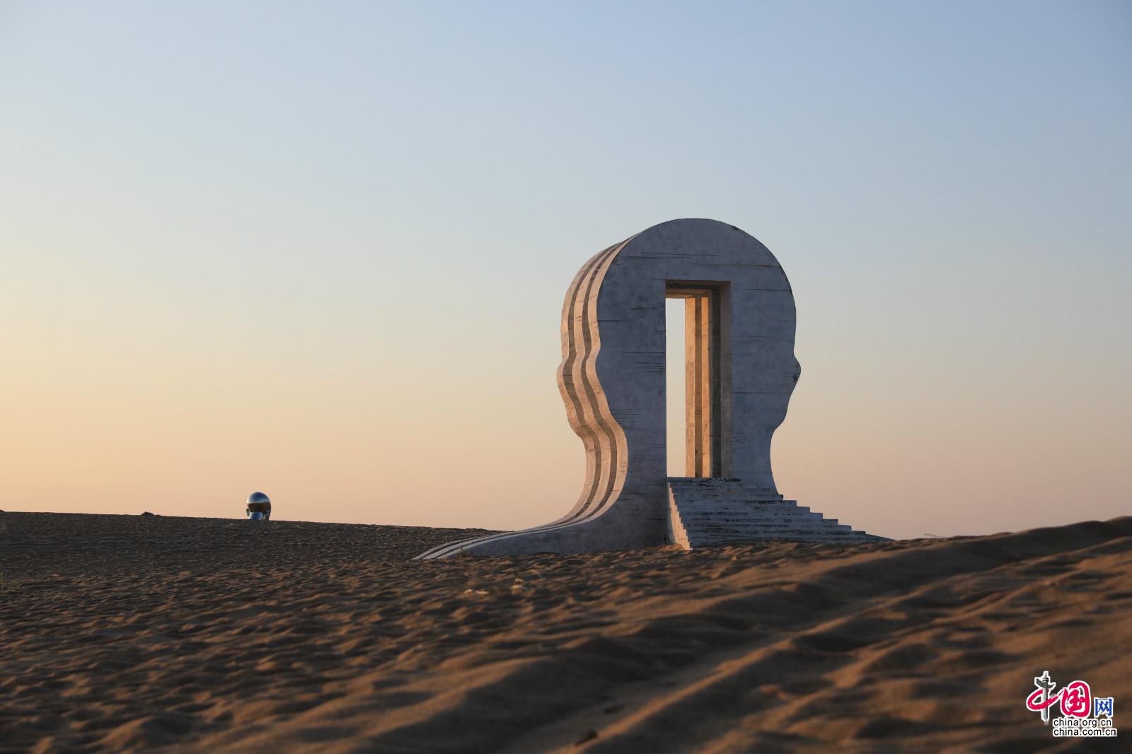 位于甘肅省民勤縣的民勤沙漠雕塑國際創(chuàng)作營,匯集了來自世界各地的雕塑作品。中國網(wǎng)記者胡俊 攝