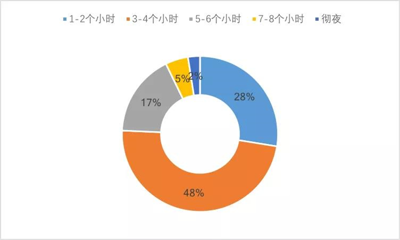 專項調(diào)查數(shù)據(jù)顯示,夜間6-10點(diǎn)為夜間旅游的高峰時段,占比達(dá)到77%;11-12點(diǎn)%及12點(diǎn)以后夜間旅游占比23%。從夜游體驗時長來看,愿意體驗3-4小時的游客最多,占比為48.1%,體驗1-2小時的比重為27.5%,體驗5-6小時的比重為17.1%,體驗7小時以上占比7.2%。