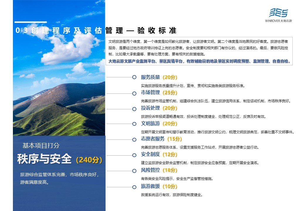 其中,基本打分項(xiàng)目主要由機(jī)制體制(90分)、政策保障(140分)、公共服務(wù)(230分)、供給體系(240分)、秩序與安全(240分)、資源與環(huán)境(100分)、品牌影響(60分)等7大項(xiàng)構(gòu)成。根據(jù)最新修訂結(jié)果,將公共服務(wù)中游客服務(wù)中心的25分,降為20分,同時(shí)加大智慧旅游分?jǐn)?shù)占比,將原本的30分,提升為35分。