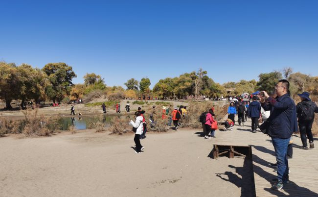 眾多游客徜徉在胡楊林間。(攝影:斯琴)