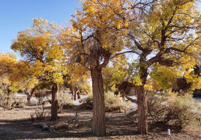 進(jìn)入最佳觀賞期的胡楊樹葉金黃。(攝影:斯琴)