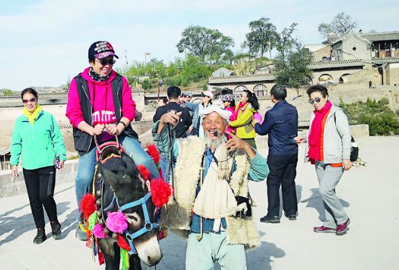 李月成是村里的建檔立卡貧困戶。上學(xué)時(shí)喜歡唱紅歌,年輕時(shí)憑著一番手藝到外面闖蕩,年紀(jì)大了又返回村子??吹酱謇锫糜螛I(yè)發(fā)展得蒸蒸日上,閑不住的他花了一萬(wàn)塊錢買了頭小毛驢,在東邊廣場(chǎng)上做起了騎毛驢的體驗(yàn)項(xiàng)目。為了讓生意“火”起來(lái),他學(xué)了幾十首民歌,以便在騎行過(guò)程中獻(xiàn)唱,讓游客更能感受黃土高原的浪漫風(fēng)情。