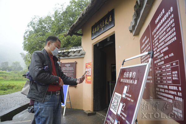 4月5日,游客在彭德懷同志故居掃碼網(wǎng)上預(yù)約參觀門票。(湘潭日?qǐng)?bào)社全媒體記者 方陽 攝)