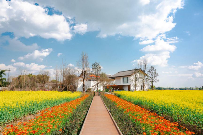 接下來,野奢度假酒店、度假村落、民宿等業(yè)態(tài)陸續(xù)呈現(xiàn)?!皻v時4年,我們以花為筆,以林盤和田園為墨,以川西文化為紙,以社區(qū)共治為軸,呈現(xiàn)了鄉(xiāng)村生態(tài)博物館、藝術公舍、耕學農場等豐富多彩的度假項目和原鄉(xiāng)美感消費場景。”唐政杰表示。