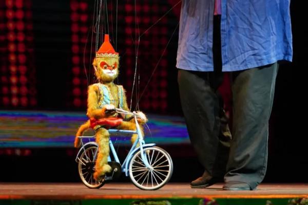 還有許多巧思藏在細(xì)節(jié)中?!逗锶ぁ费輪T沈蘇革舉起手中的猴子木偶說:“現(xiàn)在的舞臺(tái)較大,為了讓更多觀眾看到木偶頭部細(xì)節(jié)表情變化,需要不斷改良木偶細(xì)節(jié)。這個(gè)猴子木偶頭的五官更加突出、嘴巴和眼睛的開合幅度更大、制作猴毛的材料更長(zhǎng)、質(zhì)感也更好,舞臺(tái)上的表現(xiàn)力更強(qiáng)。”