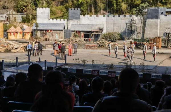 位于大別山腹地的安徽霍山縣落兒嶺鎮(zhèn),寂靜春風(fēng)掠過草木葳蕤的崖壁,峽谷里卻突然騰起硝煙,一陣陣激烈的槍炮聲在山谷間回蕩。這是大型實(shí)景劇《大別山傳奇》的演出現(xiàn)場(chǎng)。年輕游客白欣語說,置身現(xiàn)場(chǎng),數(shù)十名戰(zhàn)士從山間無畏地沖向敵人時(shí),感覺自己是在歷史中震顫的參與者。