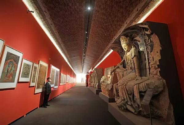 展廳內(nèi),被譽(yù)為“東方維納斯”的紫竹觀音像通過(guò)3D打印技術(shù)1:1復(fù)刻,游客無(wú)需跋涉50公里外的毗盧洞即可近觀其衣袂飄動(dòng)的細(xì)節(jié)。Mapping投影與互動(dòng)長(zhǎng)卷技術(shù)將華嚴(yán)洞三圣像、臥佛院釋迦涅槃像等經(jīng)典造像動(dòng)態(tài)重現(xiàn),游客可透過(guò)手勢(shì)感應(yīng)觸發(fā)佛像“自述”前世今生,或通過(guò)腦機(jī)設(shè)備將腦海中的佛像具象化呈現(xiàn)。
