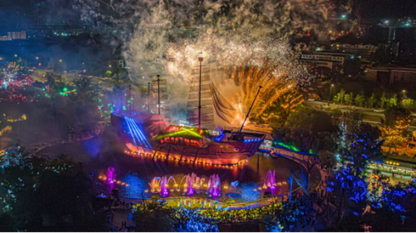 沒有名山大川的自然優(yōu)勢,也沒有傳統(tǒng)名勝的厚重家底,萬歲山武俠城另辟蹊徑,將實景演藝打造為核心競爭力。白天,大型演出聚攏人氣,互動表演增添樂趣;夜晚,音樂節(jié)、仙俠花車巡游和“打鐵花”傳統(tǒng)技藝表演營造“火樹銀花不夜天”的景象。這種全天候、全場景的游玩體驗網(wǎng)絡(luò),被業(yè)界稱為“全時沉浸生態(tài)”。景區(qū)全員化身NPC,主動與游客打招呼、玩游戲,將單向觀覽徹底升級為交互體驗。景區(qū)全年不間斷的創(chuàng)意活動持續(xù)拉滿熱度,實現(xiàn)“引流—穩(wěn)流—回流”的正循環(huán)。今年上半年,景區(qū)六成以上為省外游客,綜合營收逾6億元,同比增長162%。